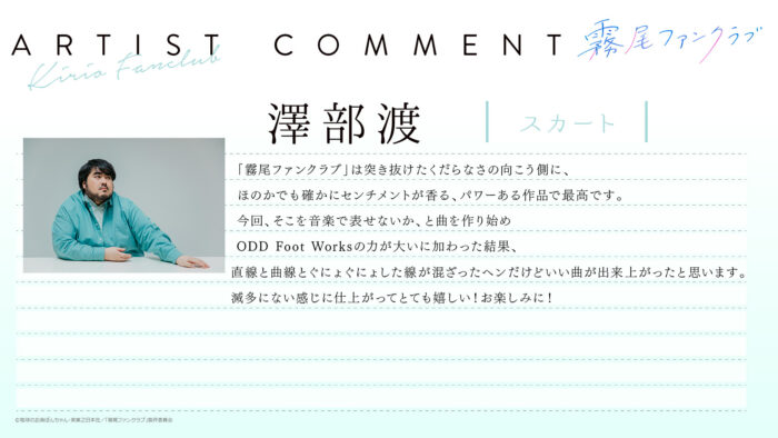 スカート、ODD Foot Worksとの新曲「FANCLUB」がTVアニメ『霧尾ファンクラブ』オープニングテーマに決定!